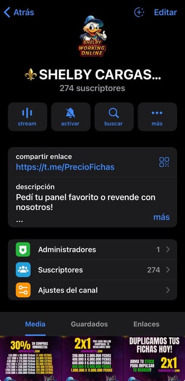 Visita nuestro canal de Telegram donde podrás descubrir las diversas plataformas que tenemos disponibles y sus costos en fichas para que puedas armar tu equipo y maximizar tus ganancias!
